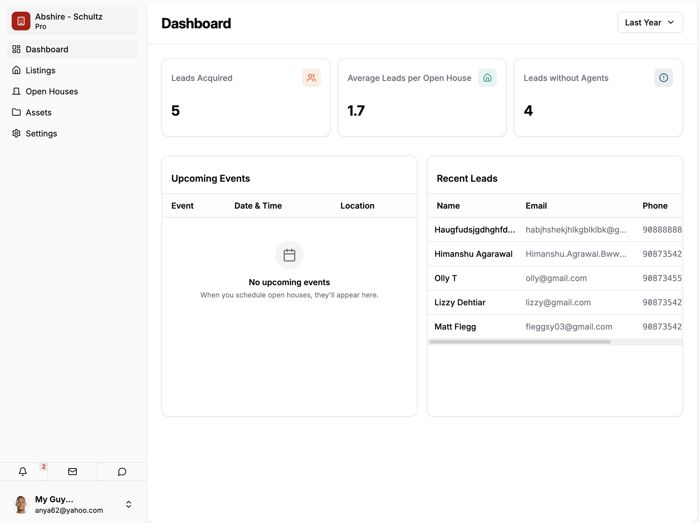 Visitors sign in via QR code at open houses, automatically capturing their contact information. The platform then triggers automated follow-up messages, so no lead slips through the cracks. Agents and brokers get real-time dashboards showing visitor traffic, engagement metrics, and lead activity across all their events.